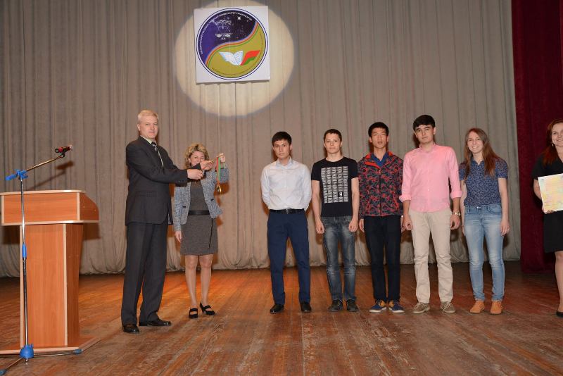 白俄罗斯国立交通大学副校长Samodumov Yuri G.教授为我校学生(右三)颁发金牌