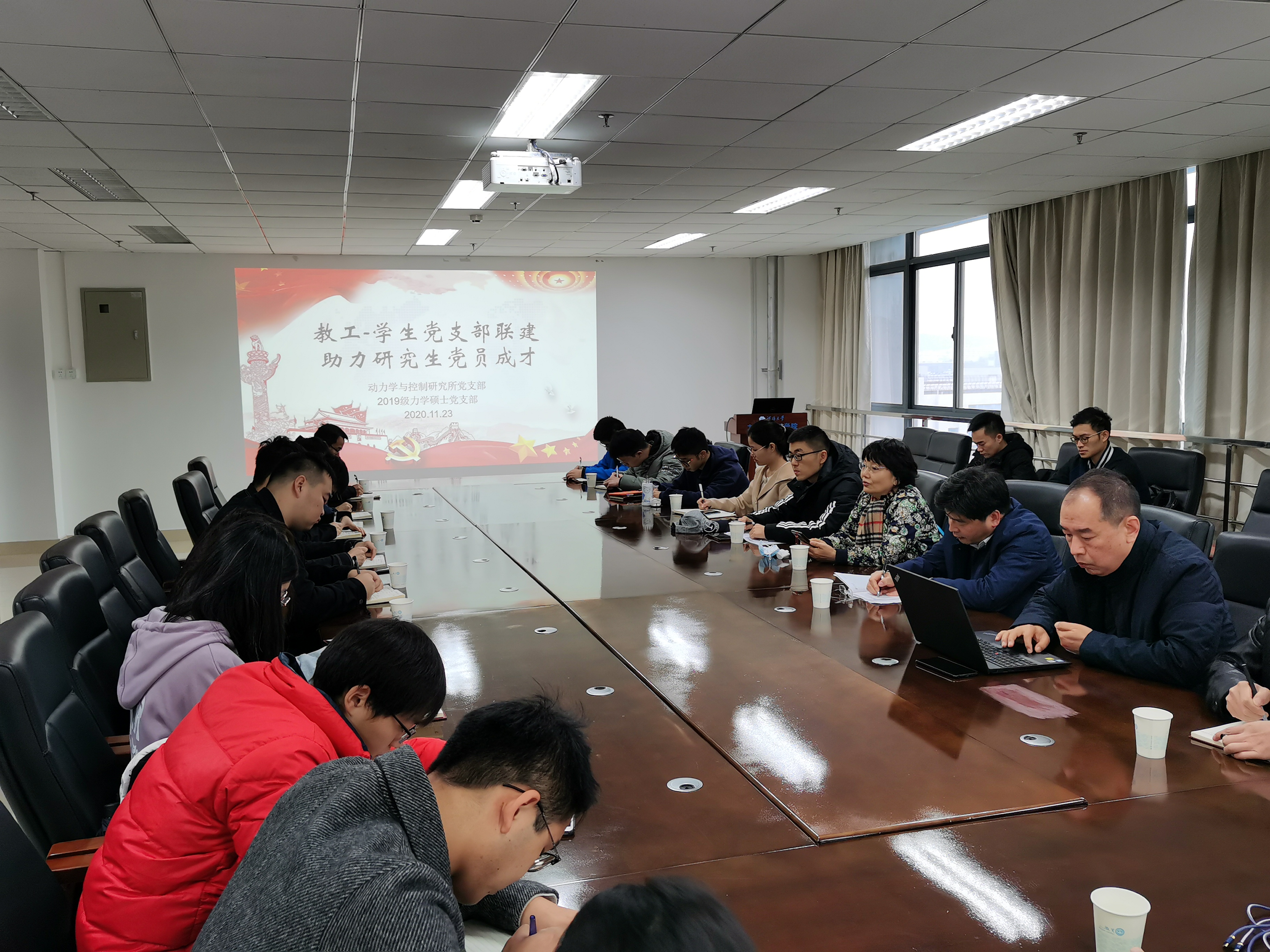 2020年11月23日上午,力学与材料学院召开了“教工-学生党支部联建,助力研究生党员成才”主题座谈会。学院党委杨春伟书记、动力学与控制研究所党支部书记曹茂森教授、全国优秀教师杨海霞教授、部分教职工和博士生代表,以及2019级力学硕士党支部全体党员出席了会议。