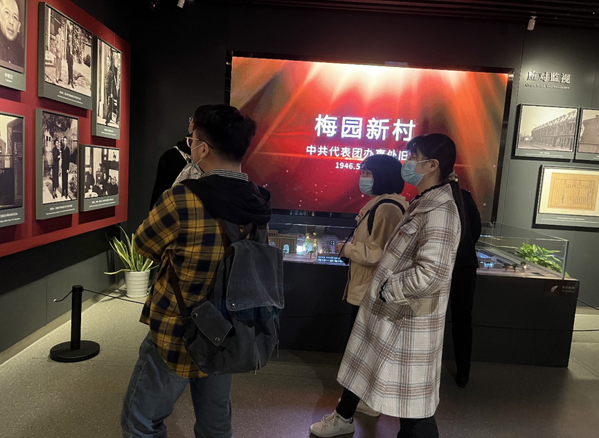 全体党员首先前往中国共产党代表团梅园新村纪念馆进行参观学习。纪念馆中,一张张照片永久定格针锋相对的瞬间,一件件文物无声讲述风云变幻的历史。光色辉映中的“梅园风范”,烛照着一代代共产党人前赴后继、奋勇前行。