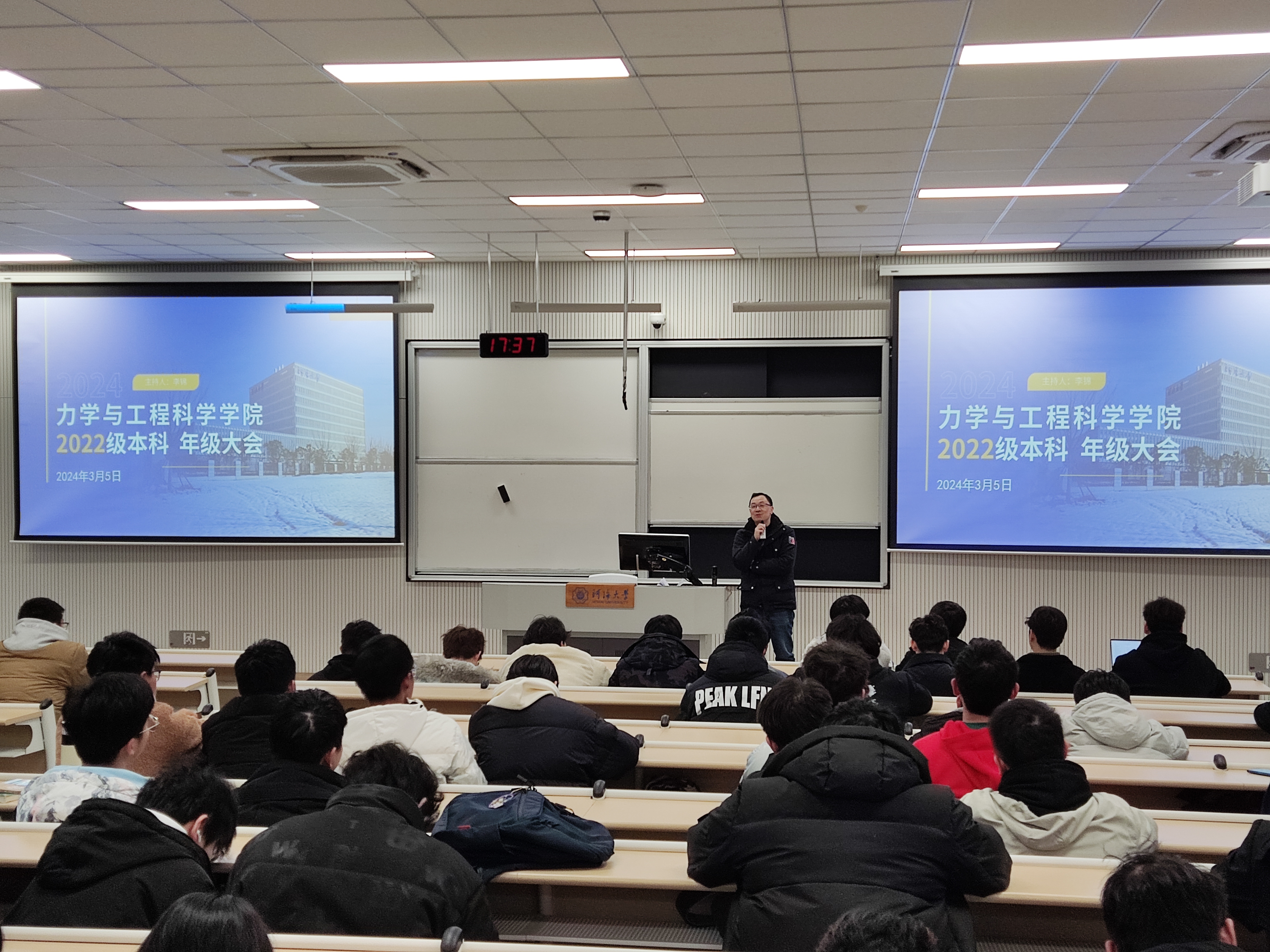 辅导员李锦老师表示,新学期是新的开始,也是新的挑战。希望同学们能够以积极的态度和饱满的热情投入到新学期的学习生活中,他将努力成为大家的热心人、知心人和引路人。年级大会还邀请了力学院23级优秀研究生何泽文分享了本科学习的经验。