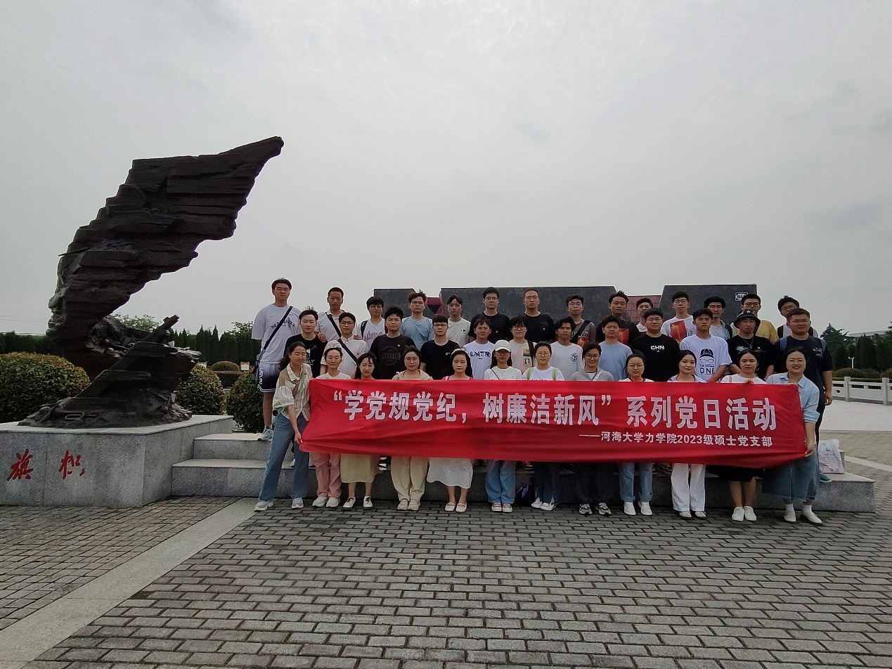 为深化反腐倡廉意识,促进廉洁文化建设,准确掌握《中国共产党纪律处分条例》主旨要义和规定要求,2024年6月1日,河海大学力学院2023级硕士党支部联合本科生党支部赴溧阳市新四军江南指挥部纪念馆,开展“学党规党纪,树廉洁新风”主题党日活动。