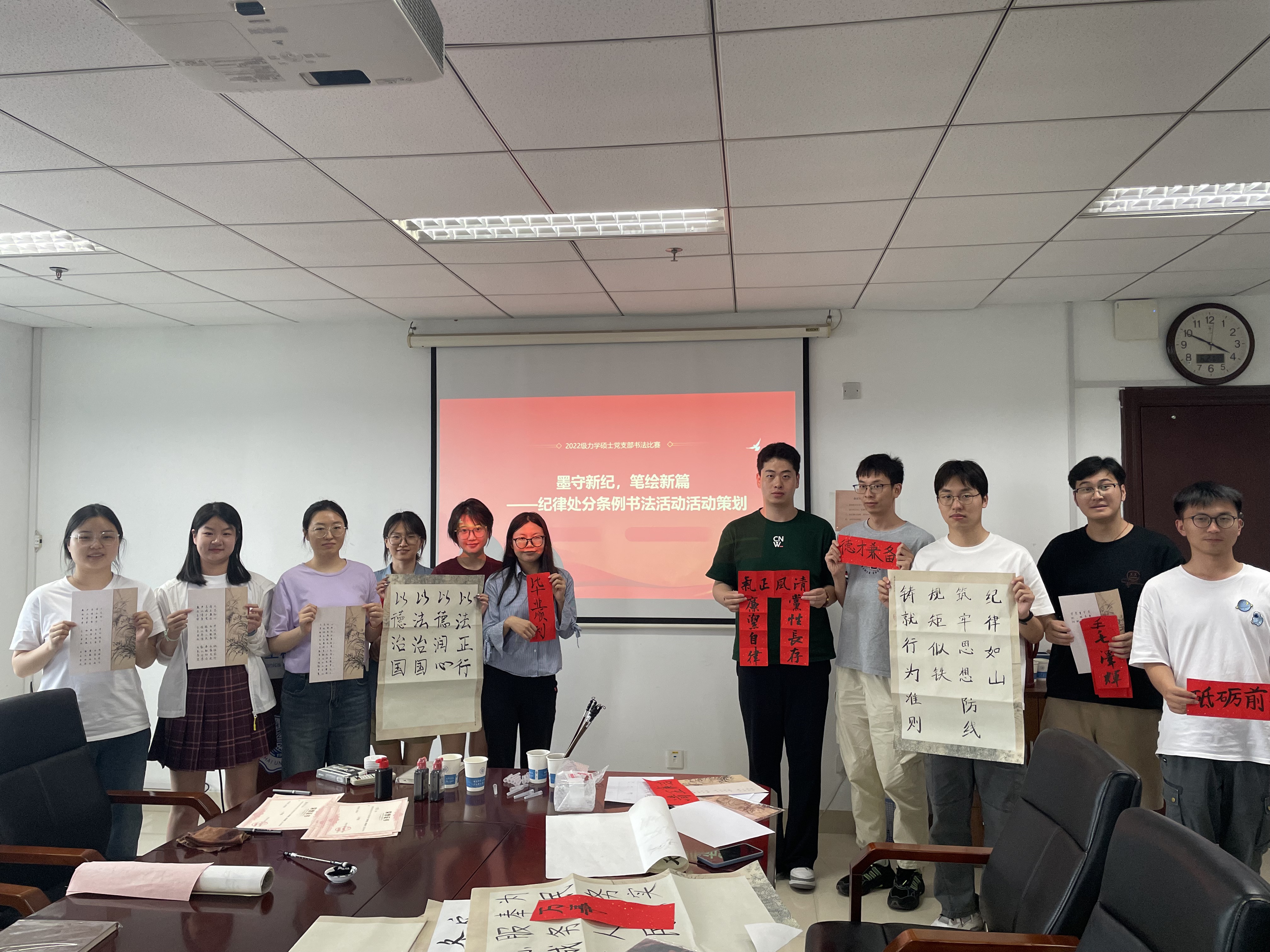 为深入开展党纪学习教育,强化党员的纪律意识、自我约束能力和免疫能力,同时进一步推进习近平总书记有关美育工作的重要指示精神,以书法传递文化自信,丰富党员精神生活,2022级力学硕士研究生党支部于2024年6月21日举办了“墨守新纪 笔绘新篇”主题书法创作活动。会议由党支部书记徐焱明同志主持,支部全体党员及积极分子参与活动。