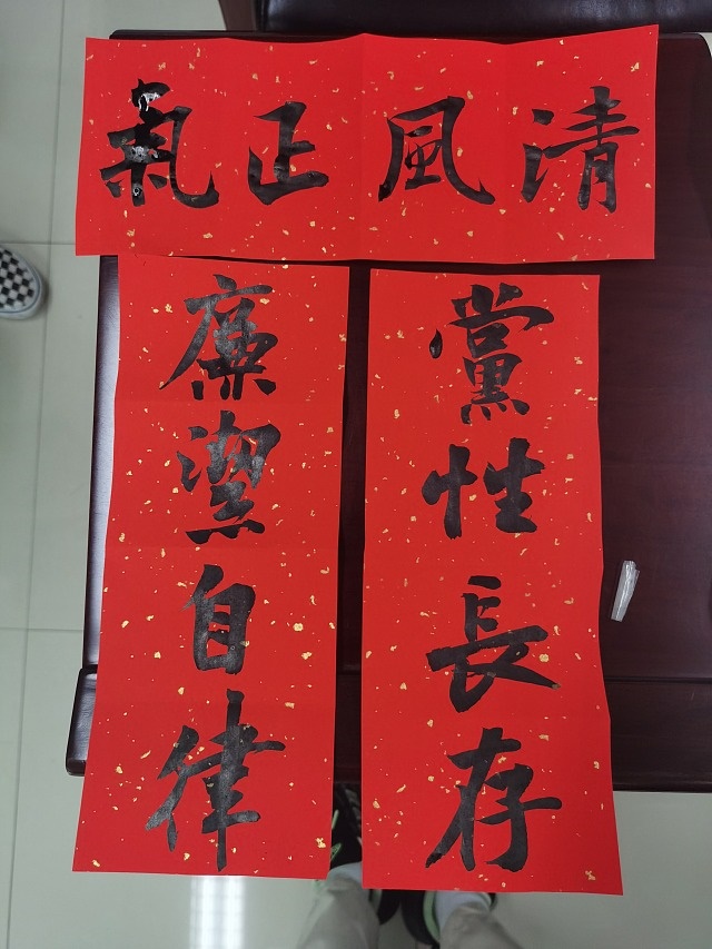活动现场,党员们手握笔杆,挥毫泼墨,一笔一划书党纪,一纸一墨颂廉洁。他们神情专注,一笔一划地书写着党规党纪的重要内容,在翰墨丹青中书写对纪律规矩的认同与敬畏。“廉洁自律,党性长存”、“不忘初心,牢记使命”等一句句铮铮誓言在纸上呈现,不仅是书法艺术的展示,更是党员们内心坚定信念的表达。