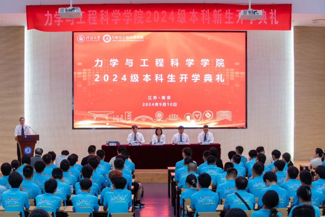9月10日,力学与工程学院2024级本科生开学典礼在乐学楼范钦珊报告厅隆重举行。学院党委书记任海莹,院长雷冬,副院长姚红兵,副院长林继,教师代表章青,工程力学系和应用物理系负责人、2024级新生班导师、学院办公室主任,组织员,本科教学秘书,新生辅导员、2024级全体本科新生参加了开学典礼,活动由学院党委副书记、副院长刘峰主持。