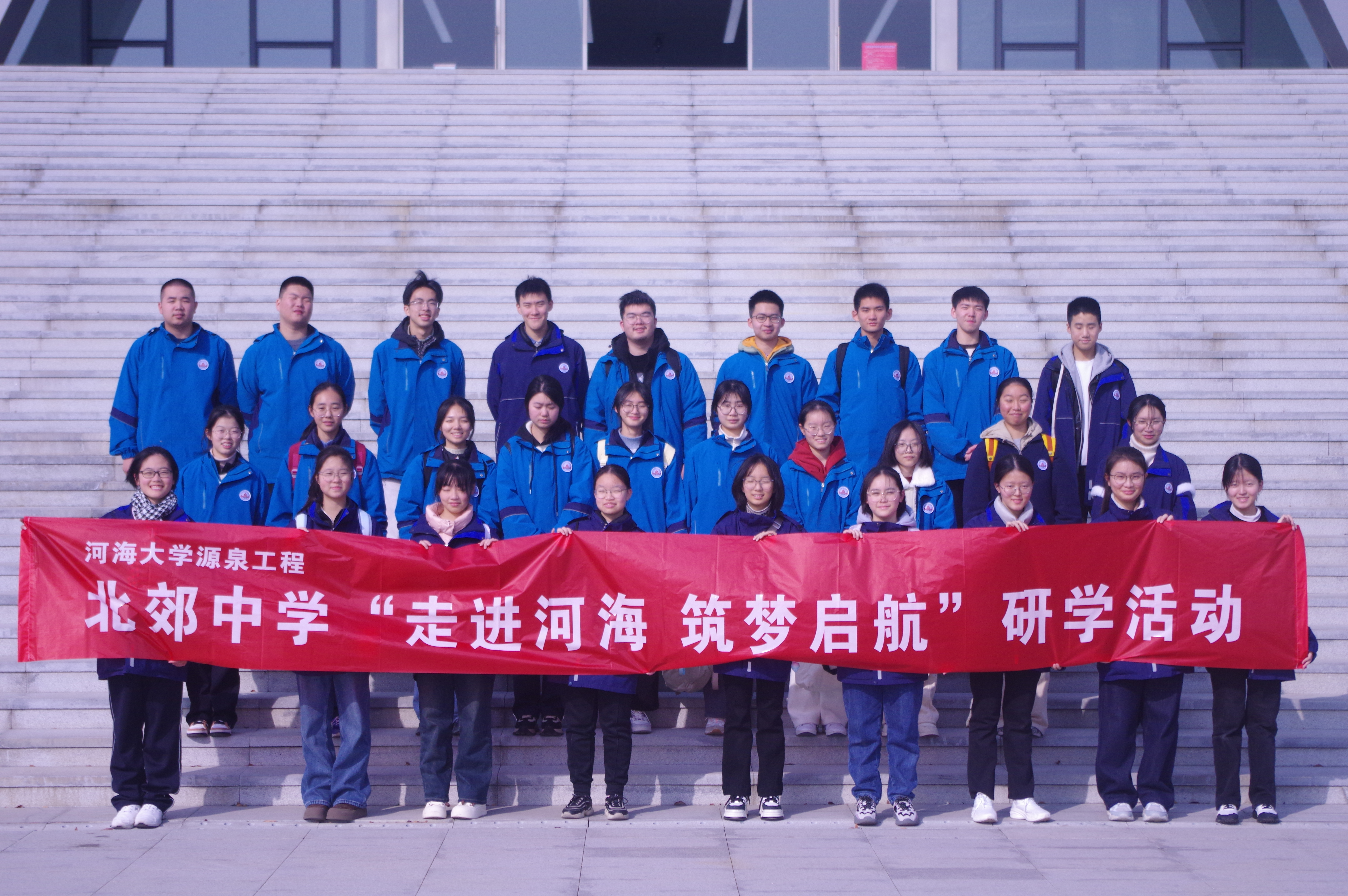 力学院以大学生寒假社会实践“源泉工程”为抓手,精心打造学校常州校区研学“力学”路。1月22日,常州市北郊高级中学50名团学骨干赴学校常州校区开展研学活动,力学院精心组织研学计划,制定研学内容,圆满完成了北郊中学“走进河海,筑梦启航”研学活动。力学院辅导员李锦、2023级学生志愿者以及常州地区源泉工程实践团队成员进行现场讲解和招生政策宣传。