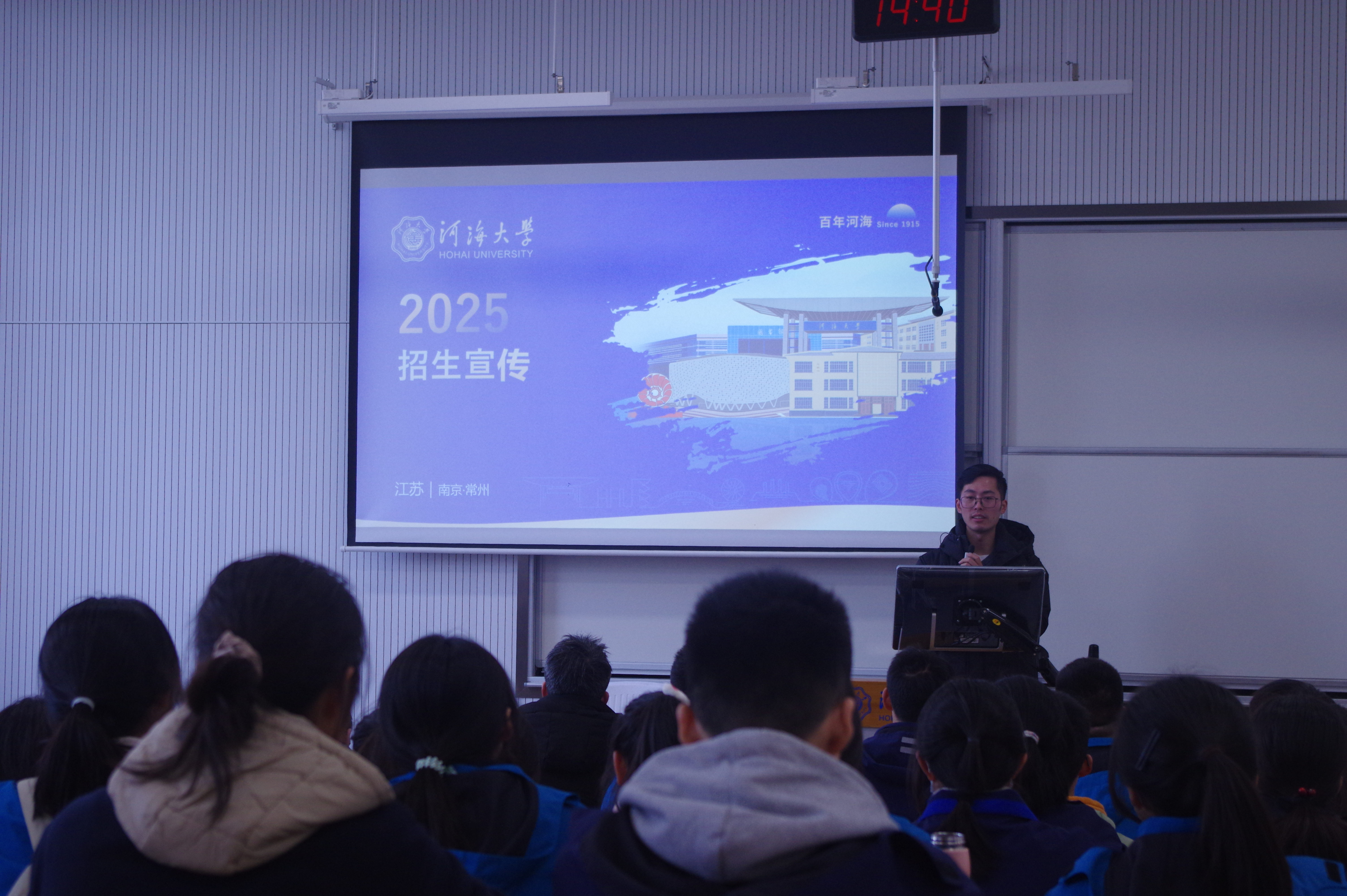 随后,力学院李锦老师向北郊中学的同学们详细介绍了河海大学的悠久历史和学科专业特色,解读了河海大学的招生政策。他鼓励同学们以梦为马,不负韶华,圆梦河海。在互动交流环节,北郊中学的学生们踊跃提问,学长学姐结合在河海的学习经历一一解答,现场气氛轻松热烈。北郊中学的同学们纷纷表示通过本次研学,拓宽了视野,对于大学生活有了更清晰的了解,期待未来也能成为一名“水之子”。