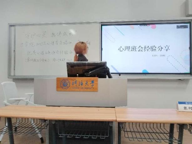活动中,四位应邀嘉宾分别结合自身心理班会开展情况以及心理工作体会做工作分享。李梅秀同学结合获得全国百佳心理委员的经验,分享了心理委员的工作心得,提出了全过程班会设计的理念,鼓励心理委员要加强专业知识的学习;王真同学在分享中强调“倾听需求、整合资源”,联动班级委员与心理中心打造互助互动班级氛围;张柯煜同学通过视频展示了“班会趣味性与专业心理知识融合”的创新形式,以签到绘画、视频创作的方式,增加活动多样性;于美娜同学从班会设计、具体开展、申报材料三个部分与在座心理委员分享参评校级优秀心理班会的工作方法。