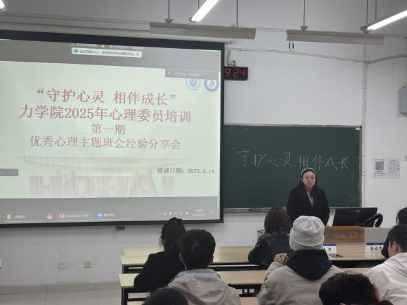 为进一步加强学院心理健康教育工作,提升班级心理委员的朋辈互助能力,3月14日,我院在博学楼举办了2025年心理委员集中培训活动,本次活动分别邀请到商学院21级会计1班李梅秀、公管院21级土管1班王真、港航院23级港航3班张柯煜、力学院21级力学2班于美娜作优秀心理主题班会的经验分享。学院团委书记、24级辅导员陈爽老师、力学院本硕博全体心理委员参加了本次活动。活动由学院心理联络员、21级辅导员周蓓老师主持。