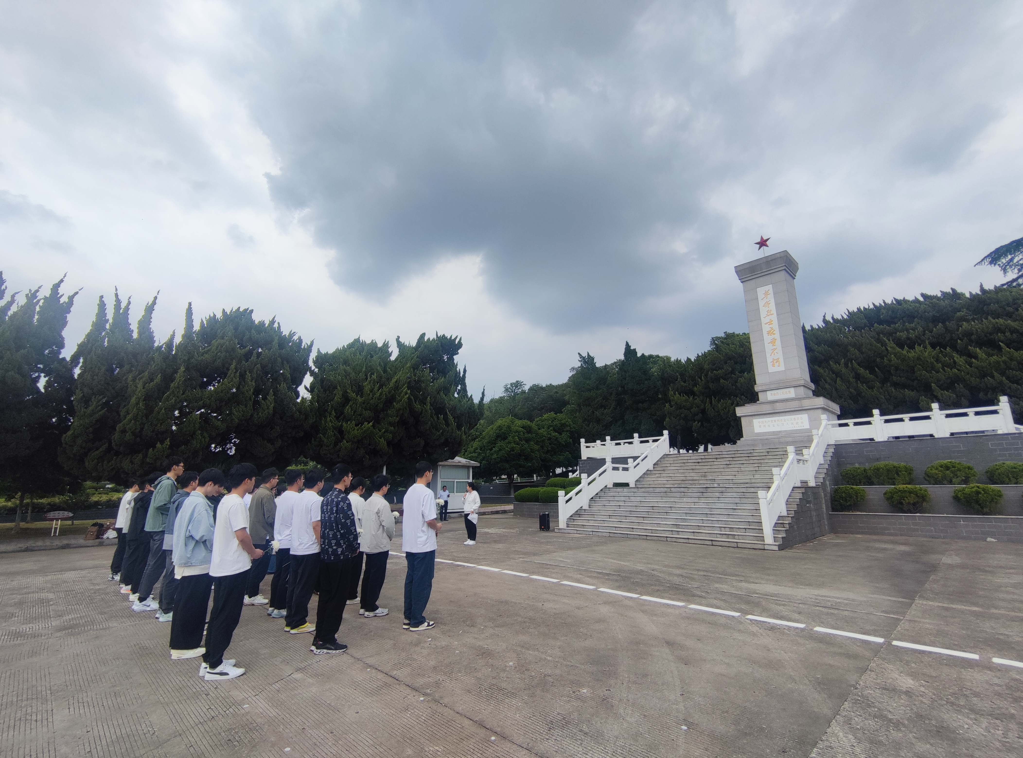 师生们怀着无比崇敬的心情,在革命烈士纪念碑前整齐列队,集体默哀,表达对先烈们的深切缅怀与崇高敬意。