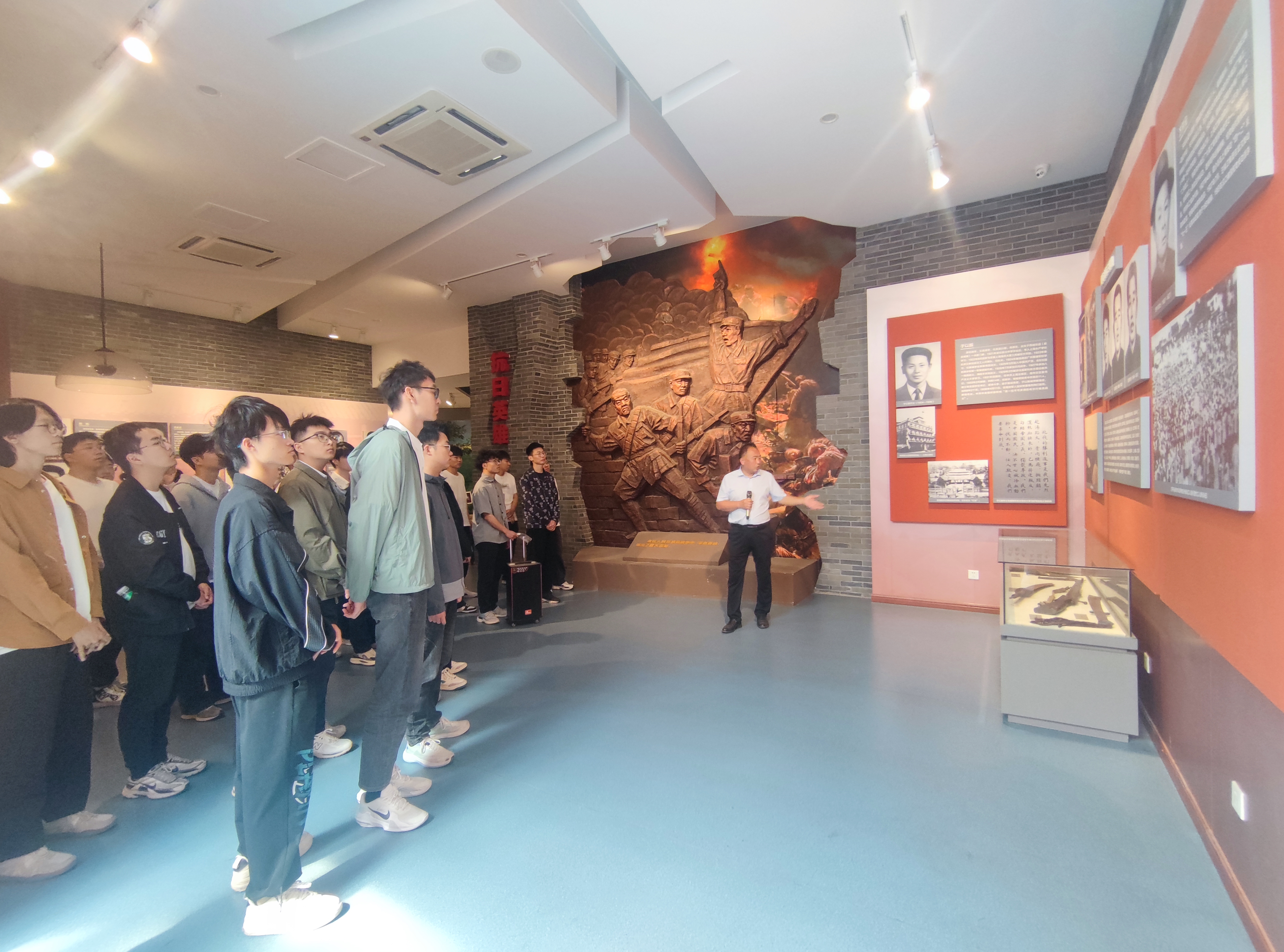 在烈士纪念馆内,泛黄的手稿、斑驳的物件、珍贵的影像资料,将往昔峥嵘岁月一一重现。讲解员生动讲述着一段段波澜壮阔的革命历史,大家认真聆听,被先烈们坚定的理想信念和英勇无畏的牺牲精神深深触动。在栩栩如生的雕塑和复原场景前,师生们仿佛穿越时空,置身于那段峥嵘岁月,深刻感受到革命胜利的来之不易。