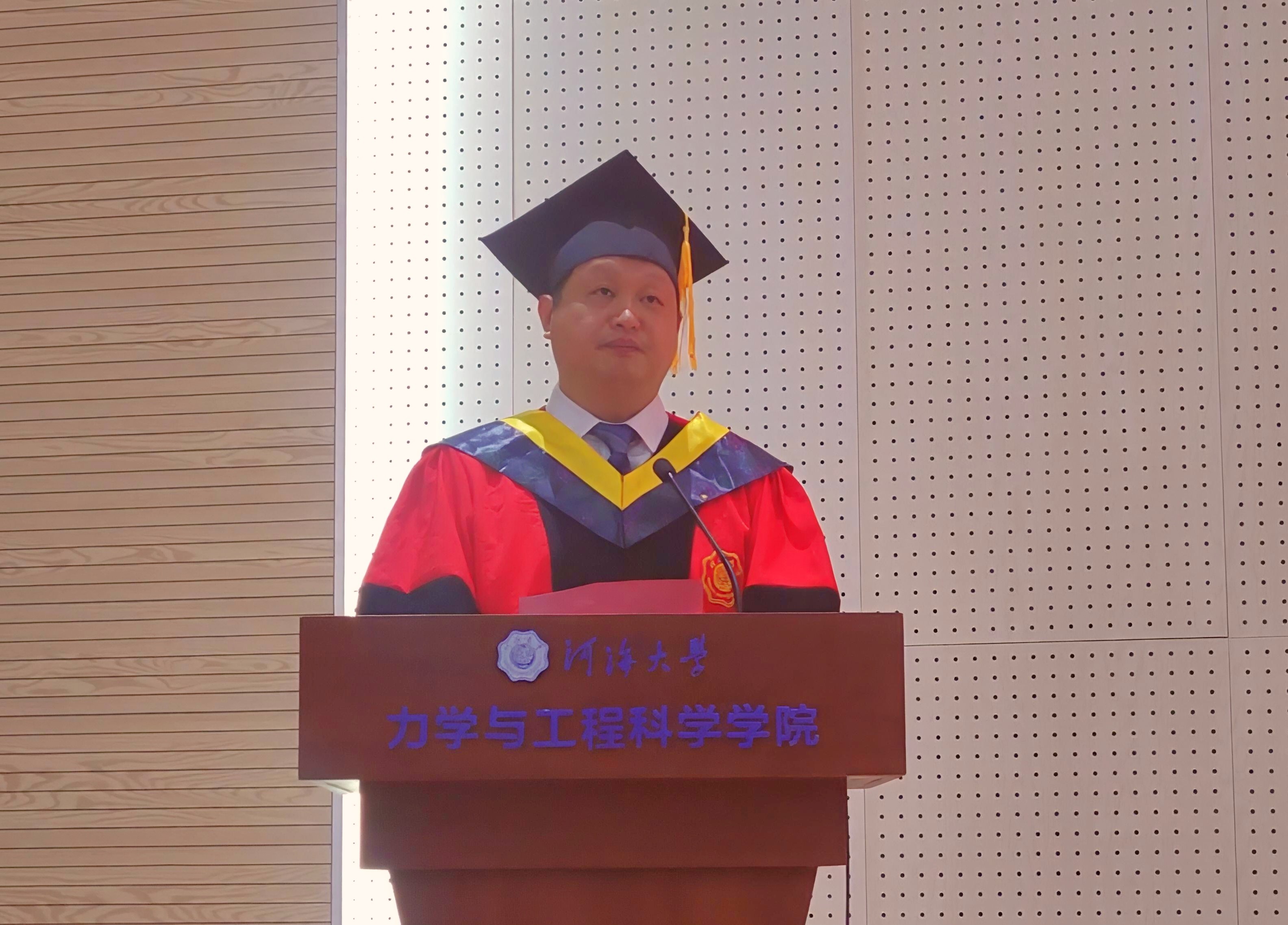 班导师代表苑晓丽老师深情寄语毕业生,她期许同学们要坚守“力学”的韧性与担当,要永葆“物理”的好奇与探索,要融汇“力理”知行合一,更要心怀感恩砥砺品格,希望同学们带着“力与理”的双重力量,带着“艰苦朴素、实事求是、严格要求、勇于探索”的河海校训,去开拓属于自己的星辰大海。