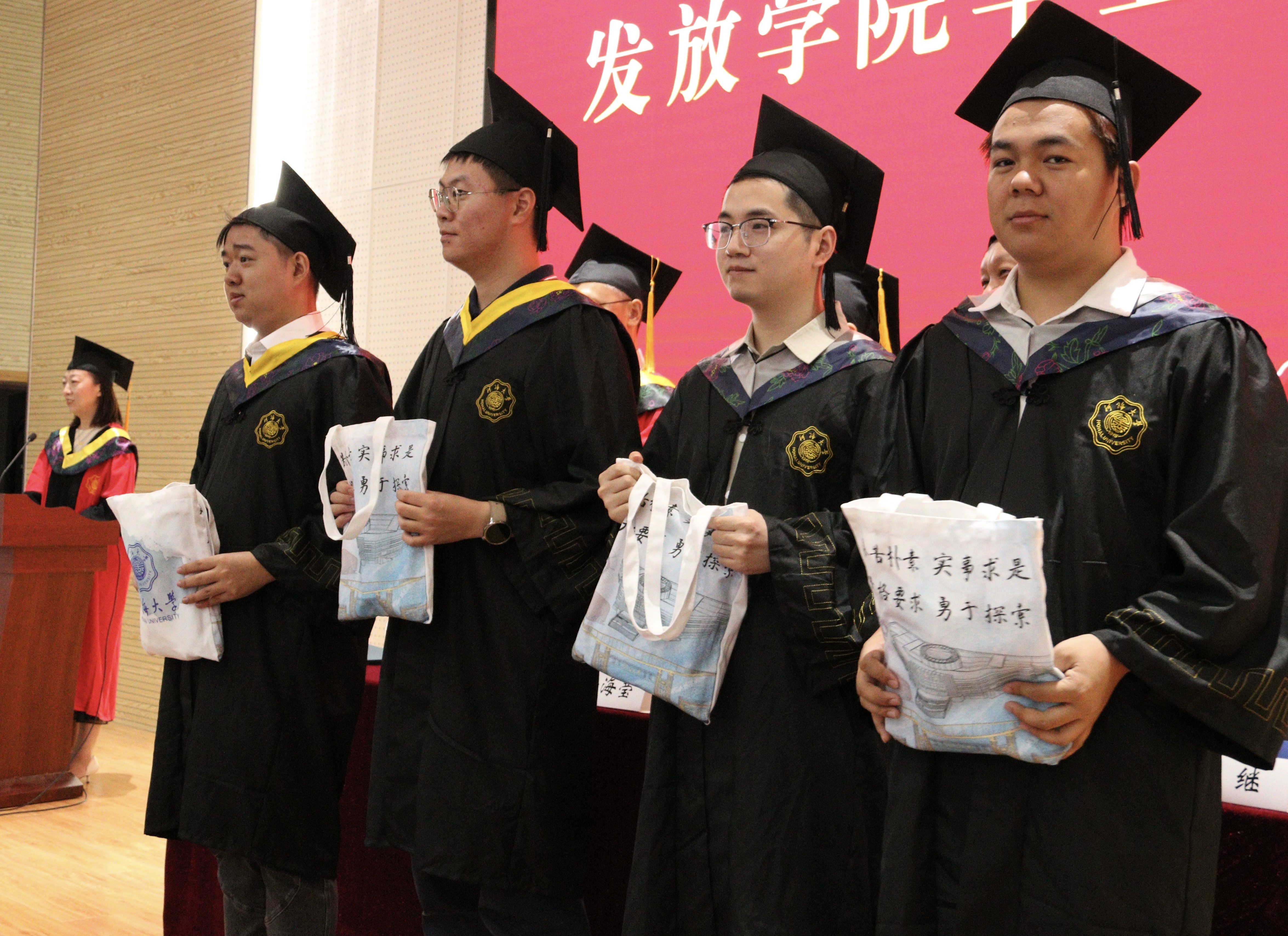 典礼上,学院领导为全体毕业生拨穗并授予毕业证书,对“沈甲慧奖教奖学金”、“工程力学系校友奖助学金”获奖毕业生进行了表彰,也为每一位毕业生赠送了精美的毕业文创礼物。