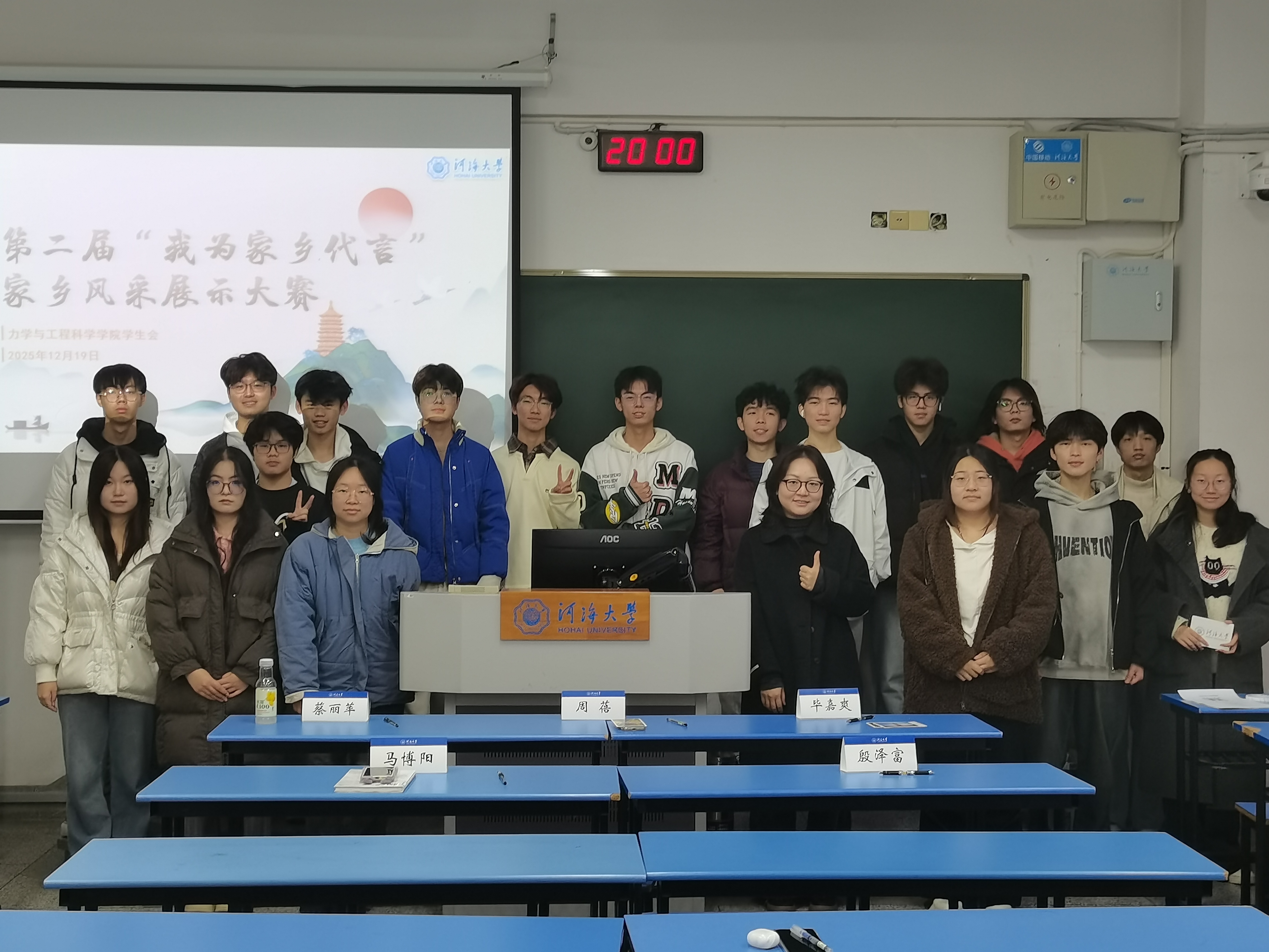 为深化“一站式”学生社区建设理念,丰富校园文化生活,力学院于2025年12月19日开展“我为家乡代言”社区文化建设展示活动,2025级辅导员周蓓老师和30余名同学参加。