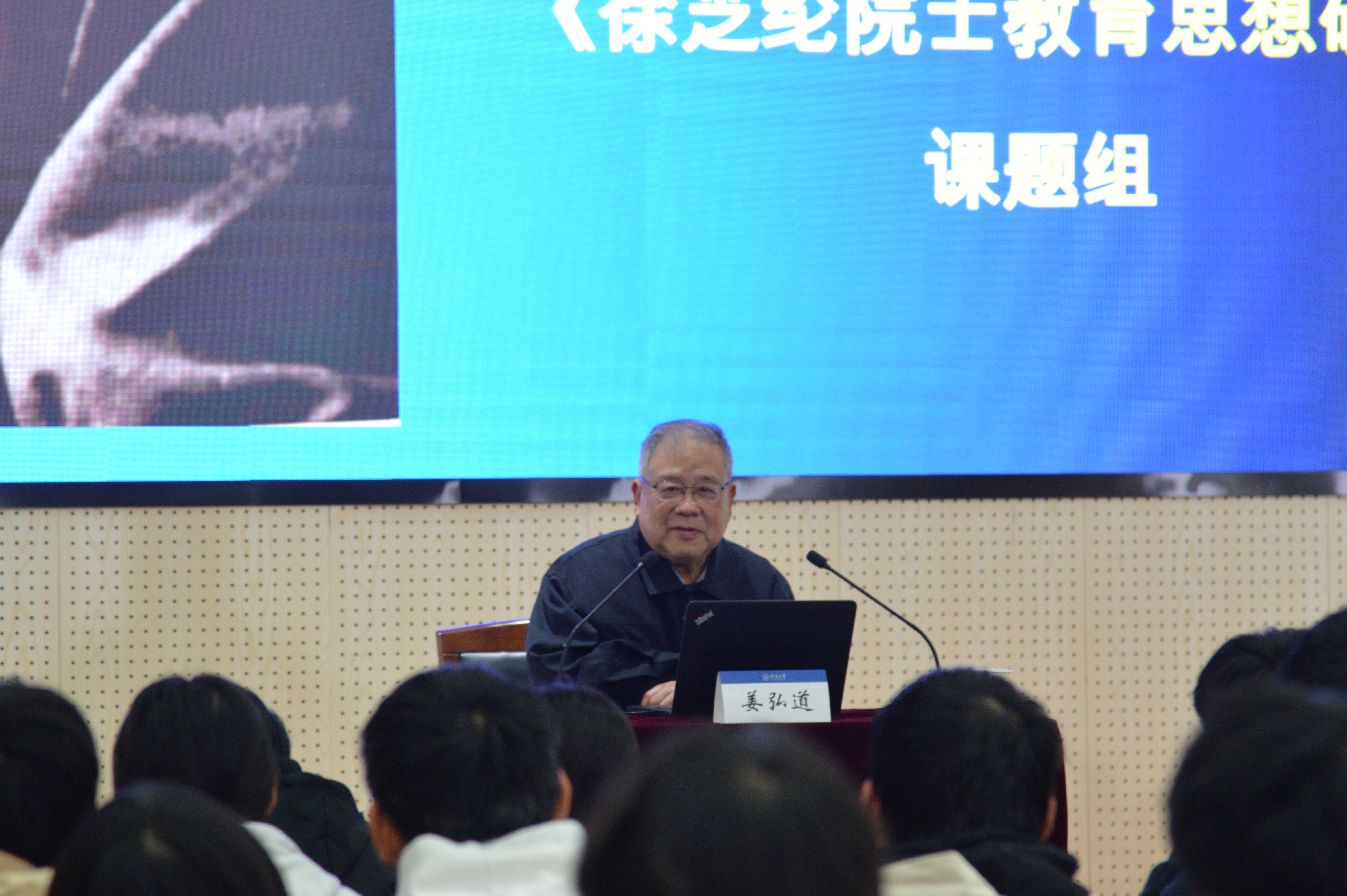 姜弘道老校长回顾了徐芝纶院士的生平事迹,讲述了他作为力学界的一代宗师和教育家的卓越成就,他带领同学们一起体会了徐老深厚的家国情怀,严谨求真的治学风范,一丝不苟的教学理念,注重实践的科学态度以及淡泊名利的生活哲学。